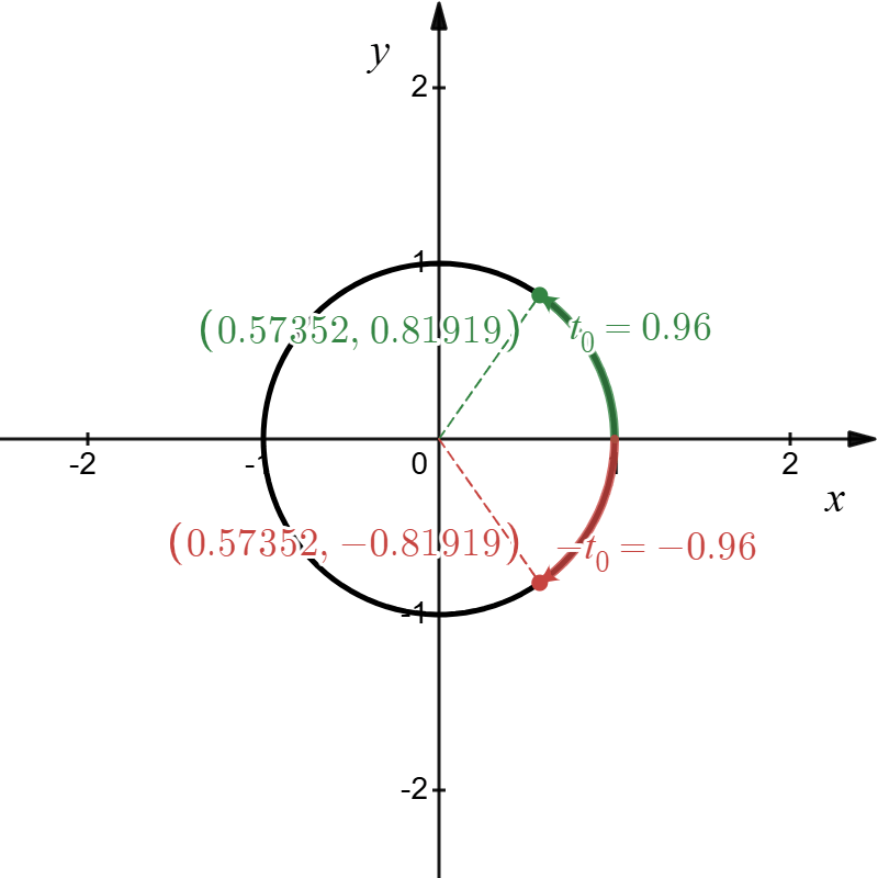 - Amati nilai sin(t0) dan sin(–t0), cos(t0) dan cos(–t0), serta tan(t0) dan tan(–t0).